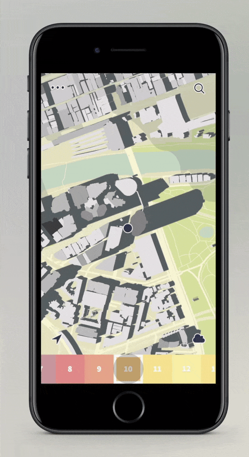Concept for an app which shows you which cafes are sunny for a specified time of day. Prototype at